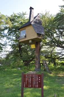 さて、緑のフィールドの奥の一角に2006年に完成した、建築史家藤森照信氏の設計による一本足の茶室「徹」もまた、一見の価値があります。