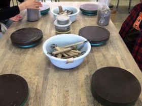 予約不要で作陶や絵付けができる施設はとても貴重。しかも初心者から陶芸指導員の方の指導を受けながら手回しロクロを使って自由に作陶にトライできるのですからうれしいですね。