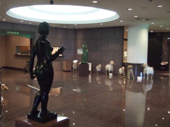 ロビーを飾るのは、エントランス正面のレオン・リシェの風景画《河辺》やブールデルのブロンズ彫刻《ぺネロップ》、またマイヨールの《花のニンフ》など格調高い作品群です。