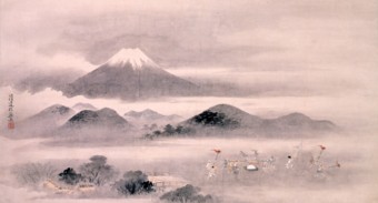 まずは、富士山の絵といえば、この人といわれるほど多くの富士山を描いた近代日本画壇の巨匠、横山大観の《霊峰不二》が展示されています。古来、信仰の対象として崇められてきた富士山が日本を代表する山でもあることを明快に表現した、いかにも日本的な作品。