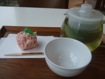 ちなみに写真のティーセットの和菓子は、奥村土牛《吉野》を表現した「花がすみ」。