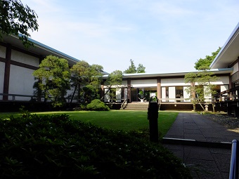 木々の緑に囲まれた吉田五十八設計の寝殿造の要素を現代建築に取り入れたデザインが印象的な本館入口を入り、