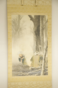 3人の人物表現が素晴らしく、墨の濃淡で情景描写した若き玉堂の並々ならぬ力量を感じさせる作品です。