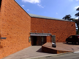 三差路を右手に進むと左手に赤茶色の煉瓦の外壁が印象的なモダンな建物が見えてきます。