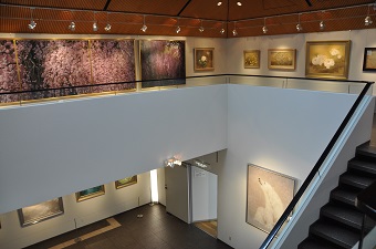 展示室は、1階から2階にかけて中心部が吹き抜けになっていて、2階は、回廊を中心に作品が展示されています。