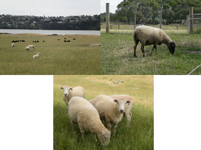 自宅から車で南へ20分足らずなので、家のすぐそばにあるワンツリーヒルが見えました。それなのにニュージーランド周遊の旅を思い出させてくれるほど手つかずな自然といった雰囲気。実際は公園なのできちんと管理されているはずですが、手を加えすぎず野生の植物や動物の保護活動も兼ねて運営されているところにニュージーランドらしさを感じま す。すぐそこにはManukau Harbour(湾)がキラキラ光っていました。大きなポフツカワの木の下には羊が休憩中。手前の岩があり草が生えていない部分は湿地のようでした。