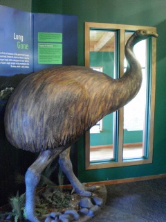 キッズコーナーもあり、ニュージーランドの鳥達の人形や木製パズルなどが置かれていました。ニュージーランドピジョンとプケコという鳥のモザイクも飾られています。絶滅したといわれている巨大鳥モアの模型。いろいろな鳥の鳴き声を聞くことができます。