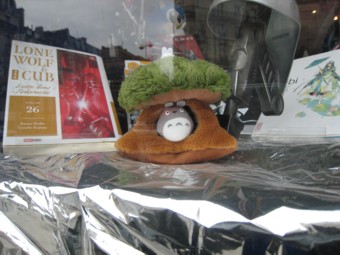 アカデミックなエリアですが、宮崎アニメのキャラクターがウィンドウディスプレイされている本屋さんもあるのが今風。