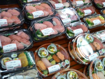 次にお弁当、お総菜コーナー。ここの物はどれをとってもおいしいのですが、特においしいのはお寿司です。わたしはここのリーズナブルなちらし寿司の大ファンで、滞在中に一度は食べたいなあと思っています。日本のヘタなお寿司屋さんよりネタも新鮮で、ガッツリアメリカンサイズ!食べごたえも十分です。