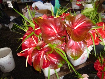 南国らしいアンスリウムの花もその栽培や品種改良に尽力したのが日系人だそうで“OBAKE”“MIDORI”など日本語の名前が付けられているものも多いので、色も形も名前も楽しめる花です。