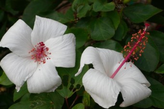 赤やピンク、最近では紫色など華やかな色と形でお馴染みですが、とても清楚なKokio keokeo と呼ばれるハワイ固有種のハイビスカスもあります。白く小ぶりな花に鮮やかな赤の花芯でとても美しい花ですから、ぜひみつけてみてください。
