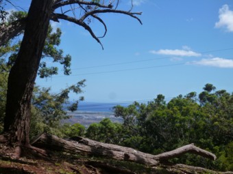周囲に目をやると、空に向かって高々と樹を延ばしている針葉樹がたくさんあることに気が付かれると思います。これが、かつてキャプテンクックがハワイ諸島に種を持ち込んだとされるノーフォークパイン通称クックパインです。