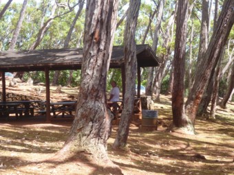 車窓の緑から時々パールハーバーやアイエアの町、青い海がまるで下界を除くかのように見えて、またそれも素敵、この周回路の途中にも東屋があってHeiau横の東屋同様ピクニックには最適です。