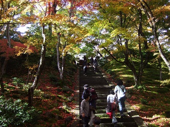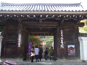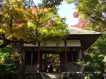 山門から仁王門、急な階段を上るに連れ次第に紅葉の