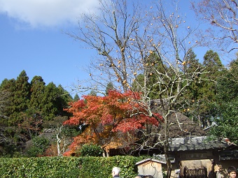 紅葉と梢に残るカキの実が、風情のある嵯峨野らしい佇まいを醸し出しています。