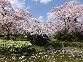 お弁当持参のご家族、お友達同士のお花見グループが目立ちます。