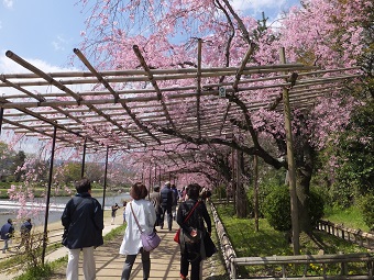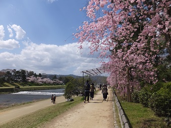 特に、京都府立植物園そばの半木(なからぎ)の道は約70本の「ヤエベニシダレザクラ」が植えられ