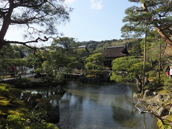 銀閣(国宝)は、観音殿として質素高貴な印象、東求堂は日本最古の書院造りで、