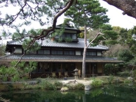 画室、茶室、持仏堂などの建造物が点在。国の名勝に指定されている池泉回遊式庭園も見どころです。