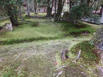 奥に進むと苔で覆われた庭が続きます。静かで雰囲気のある寺院。