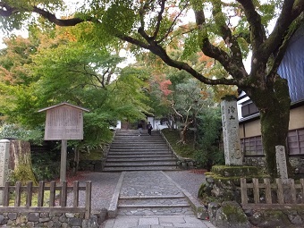 山に向かって上っていくと、ほどなく深い緑に囲まれた法然院の石段に到着します。