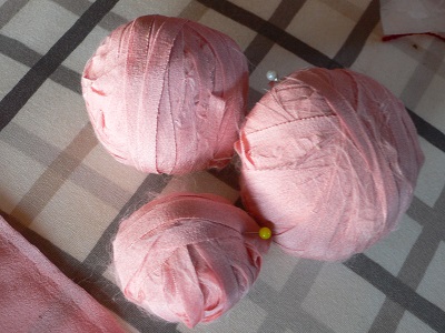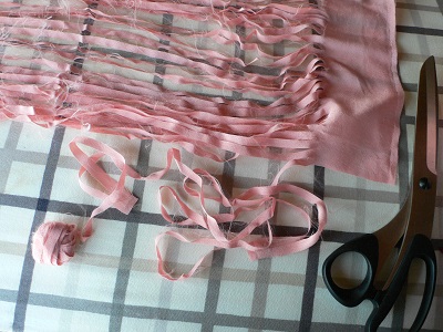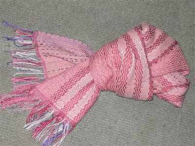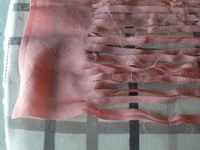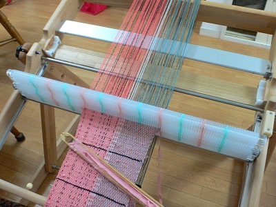 私的にははじめて裂き織りで桜色ショールを織りました。