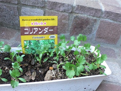 この間室内で発芽させたコリアンダーの本葉が出てきました。