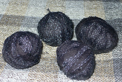洗濯して、糸状に細く裂き、織機にかける横糸としてもう一度再生、