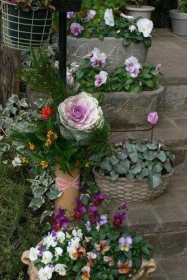 葉ボタンを飾りました。近頃の葉ボタンは様々の形状・色が