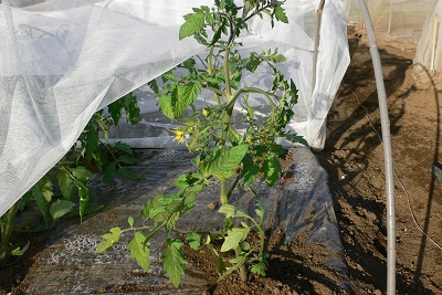 中球トマトを植えつけ(写真参照)全部の列に作物が植えそろう