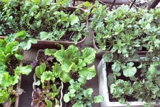 玄関先ではプランターに春菊・レタス・ルッコラを栽培しています。
