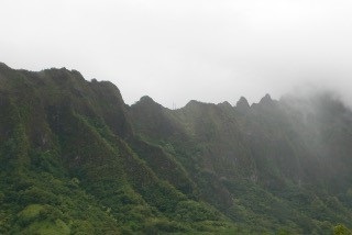 していますが実際に東岸のカネオヘの街から見上げると、垂直にきり立った岩の