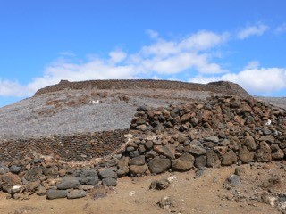 68mx30mの敷地を6mの高さの溶岩の石積みが囲み、まるで要塞です。 大海原に相対する遺跡は大空に際立って、カメハメハ大王の野望を示すかの様に 雄大です。 以前アイルランドを旅した折、アラン島で出会った古代遺跡ドン・エンガスに 奇しくも類似していました。3000年以上前に造られたと言われ、要塞とも儀礼の ための聖域とも、未だに解明されていません。