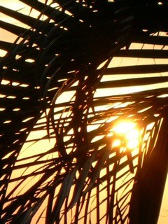 <ヤシの葉越しのハワイ島の落日>