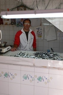 <可愛い魚のタイルの店には小粋なお兄さんが>