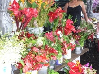 <朝市の花屋さんの店先>