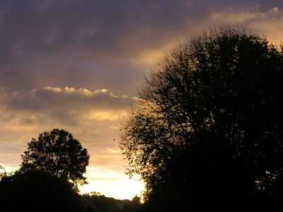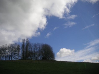 少し郊外へ出たところで。すっかり葉の落ちた木々と、まだ夏の勢いの残る雲。
