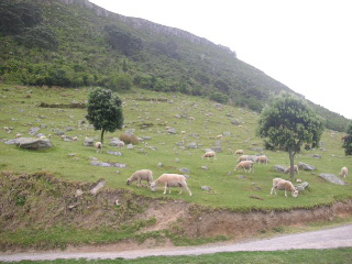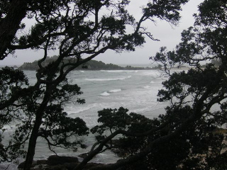 まずはその地名にもなっているMt Maunganuiのウォーキングコースをご紹介します。マウントと呼ばれるこの山は岬の突端にあり、頂上へ登るコースと麓を巡るコースがあります。下から見上げる登頂コースはかなり急なもの。でも少し登っただけで広く白い砂浜が見渡せます。そして羊がいっぱい。あいにくの天候で向こうに広がる海も島も見えず、寒空が広がるばかりだったのが残念でした。