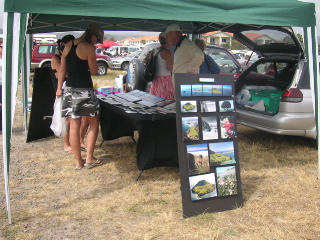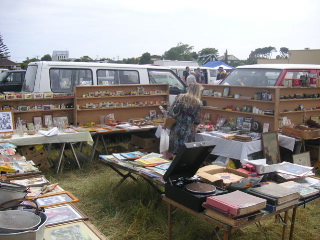 日曜日の朝は、隣の街Papamoaにて開かれていたフリーマーケットに行ってみました。ハチミツや野菜、セカンドハンド(中古品)がたくさん。写真はレトロなミニカーや絵本や雑誌などのアンティークのお店と、マウントの写真をプレートにしたものやポストカードを置いているお店です。