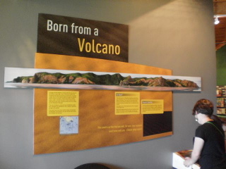 これ全部がRegional Parkの地図、すごい広さです。火山地帯なのでその成り立ちなども紹介されています。マオリの船の模型?など、展示品がたくさん。