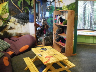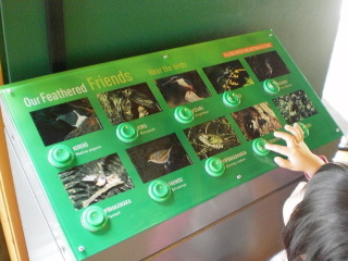 キッズコーナーもあり、ニュージーランドの鳥達の人形や木製パズルなどが置かれていました。ニュージーランドピジョンとプケコという鳥のモザイクも飾られています。絶滅したといわれている巨大鳥モアの模型。いろいろな鳥の鳴き声を聞くことができます。