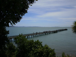 やってきたのは同じ公園内のCornwallisというエリア。桟橋は釣りをする人でいっぱい。桟橋から見える山の頂上だけ木がなくてちょっと間抜けですが、灯台かなにかが見えるようにするためらしいです。どこまでも続きそうな桟橋。