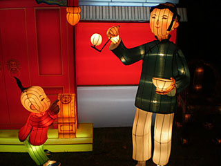 きらびやかで立派な門をくぐると、いろいろなテーマで作られたランタンたちが所狭しと並んでいます。