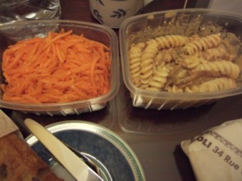 こちらでは、パスタとピザ、ニンジンサラダなどを購入。