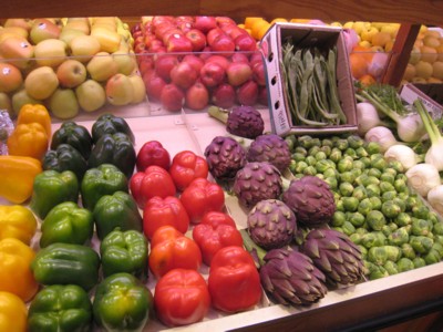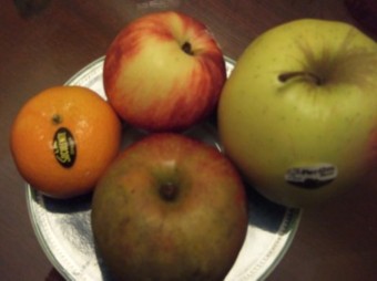 野菜&果物を扱っているお店に寄り、3種のリンゴと、ミカンに近いマンダリンオレンジを5、6個購入。すべて、一個からの計り売りです。ヨーロッパでは、朝食に生野菜はつかないので、果物の買い置きは必須。