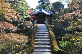 賞花亭の山裾に建つ園林堂は桂離宮造園の二人の立役者の二代目智忠親王が造営された本瓦葺宝形の持仏堂。