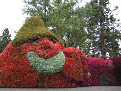 マイナウ子どもの国では、孔雀など花でできたオブジェが展示されています。巨大キャラクターオブジェには驚かせられました。