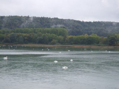 入り江には、沢山の白鳥が飛来し、羽を休めています。