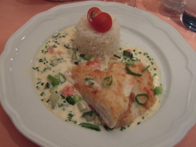 ファンタスティック街道と、シュヴァルツヴァルトを含むシュヴァーヴェン地方は、豊な水と気候に恵まれた、野菜や果物の産地。また、おいしいワインができることでも知られています。フランスにも近いため、シュヴァーベン料理は、ドイツの中でもピカイチと評判。今回は、ボーデン湖産のマス料理やメーアスブルクのZwiebelkuchen(ツヴィーベルクーヘン)が印象的でした。ツヴィーベルクーヘンの基本は、たっぷりの玉ねぎをじっくり炒めて、イーストの入った生地にのせて焼いたもので、フランスのキッシュのようなもの。当地では秋の新酒の出回るころの味覚のようでした。