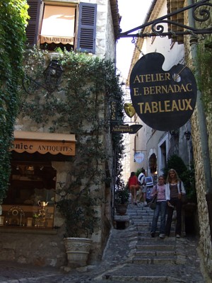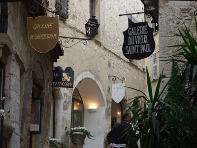 この街の魅力は、中世の町並みだけでなく、近くに現代アートのファンを惹きつける美術館があったり、この地を気に入って多くのアーティストが在住し、ギャラリーが多いこともあげられるでしょう。路地の両側に並んでいる様々なギャラリーの看板を見て歩くのも、ウィンドウ越しにギャラリーを覗くのも、気に入ったギャラリーをひやかして歩くのも楽しいかもしれません。